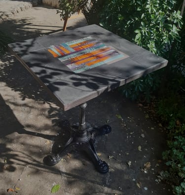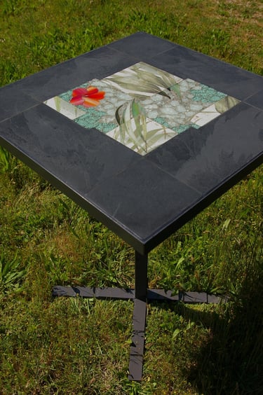 Je vous propose mes propres créations de tables, hautes ou basses, bout de canapé… mais aussi de les réaliser suivant vos choix de matériaux et sur mesures.